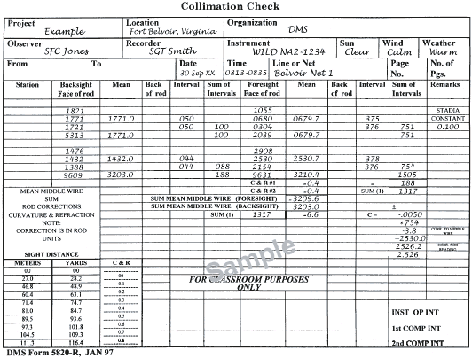 - Compute and record the stadia intervals (in millimeters) (6b). If the difference is greater than 3, reobserve.