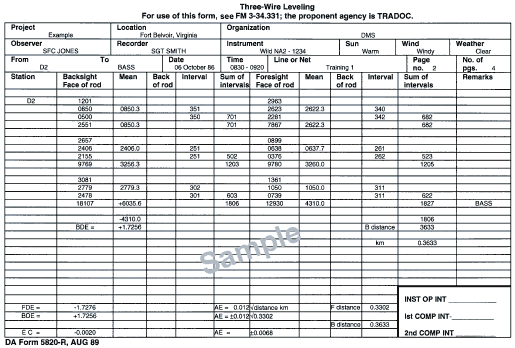 - Traverse station names (the first and last columns of DA Form 1940).