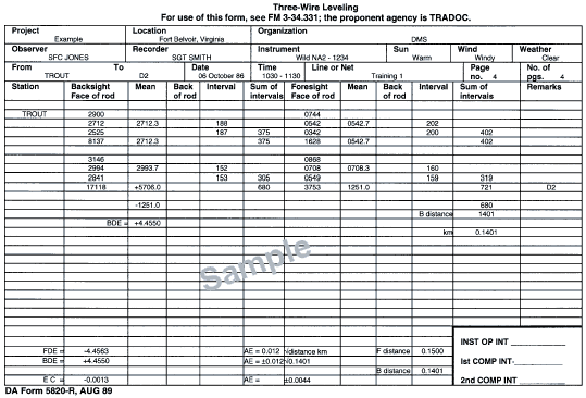 - Elevation of the occupied station (denoted by h1) (from DA Form 1962).