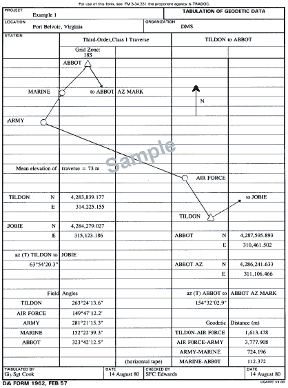 C-5. DA Form 1940 is used to compute a grid traverse. Tabulate known and field data for the traverse on a DA Form 1962 (Figure C-3) or on a blank piece of notepaper with an identifying heading. Include the following: