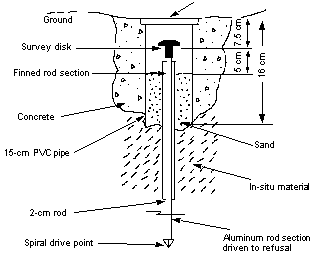 - Sections of rebar or pipe driven into the ground with a concrete collar poured around the upper 0.3 meter.