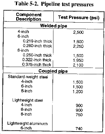 Although hydrostatic testing of sections of welded pipelines for tanker unloading during the onshore construction phase is best, air testing is relatively safe and reliable. Submarine pipelines are weight-coated (to make them heavy enough to remain on the bottom) and therefore are not likely to whip about even if a welded joint should fail suddenly and completely. Also, 110-psi air pressure is equal to or slightly greater than the normal pressure of 100 to 110 psi that tanker captains will allow on their pumps.