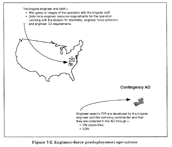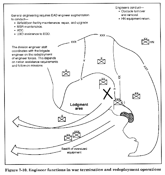 The brigade engineer's focus is general engineering missions aimed at facilitating the brigade's redeployment (see Figure 7-10). Examples of engineer missions and responsibilities are--