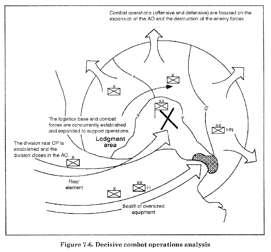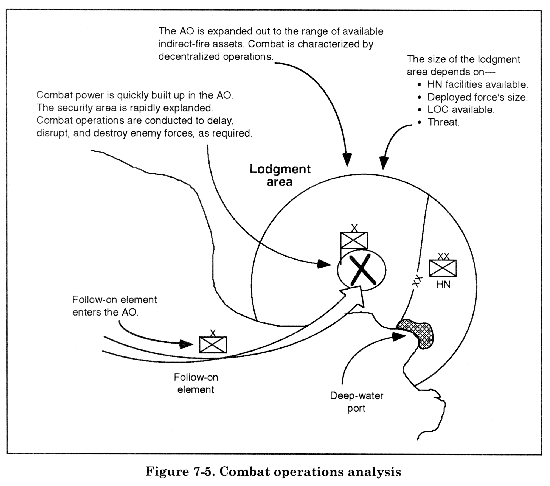 Combat forces and a logistical base are concurrently established and expanded to support combat operations. As the situation in the lodgment area is stabilized, the brigade performs (as directed) expanded combat operations from the lodgment area to eliminate the enemy force. These operations can be offensive and defensive in nature and will require additional combat, CS, and CSS forces.