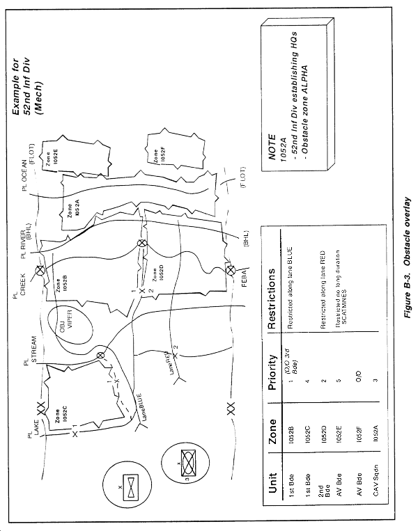- All existing and proposed friendly obstacles and control measures (obstacle zones, restrictions, and lanes; directed or reserve targets; and division-level situational obstacles, including associated NAI/TAI).