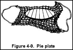 b. Pie Plates. The crushing effect of a cargo net may be reduced by using a round "pie plate" (Figure 4-9). Pie plates are constructed of two dunnage layers. They vary from 54 to 72 inches in diameter. Personnel place the pie plate in the center of the net and tack the cargo so that all the weight is on the pie plate. If pie plates or pallets are not available, cargo handlers use cargo boards to reduce the crushing pressure of the cargo net. Cargo boards are constructed of two layers of dunnage nailed together to make a solid board measuring 4 by 6 feet. The cargo board is placed in the center of the net and is used in the same way as a pie plate.
