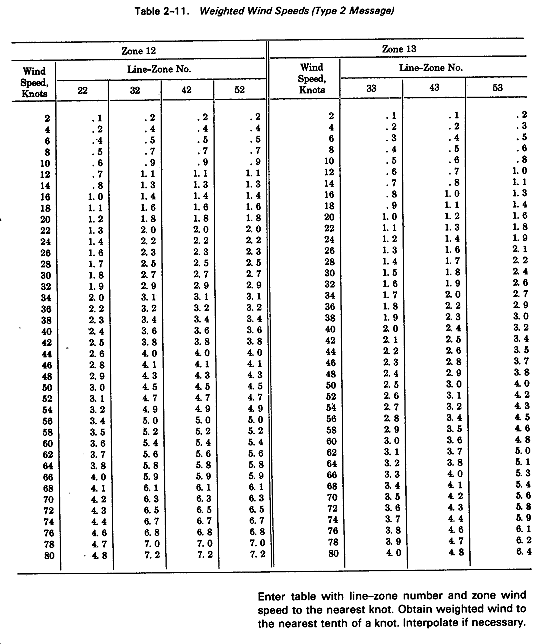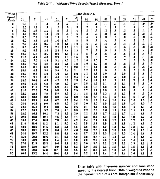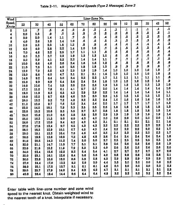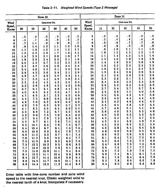 Table 2-11. Weighted Wind Speeds (Type 2 Message), Zone 2
