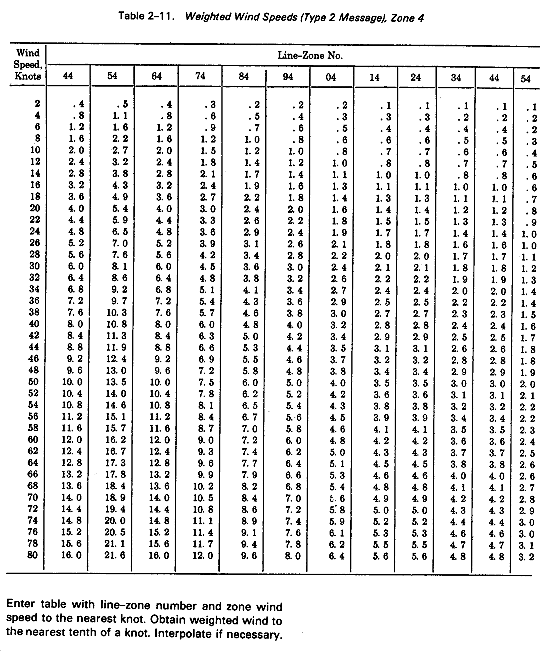 Table 2-11. Weighted Wind Speeds (Type 2 Message), Zone 4