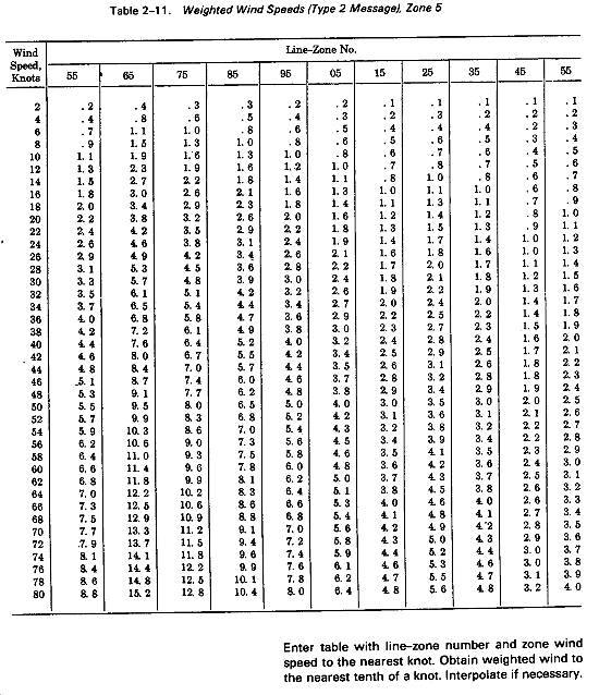 Table 2-11. Weighted Wind Speeds (Type 2 Message), Zone 5