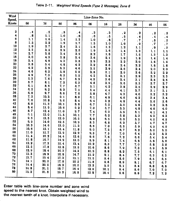 Table 2-11. Weighted Wind Speeds (Type 2 Message), Zone 6