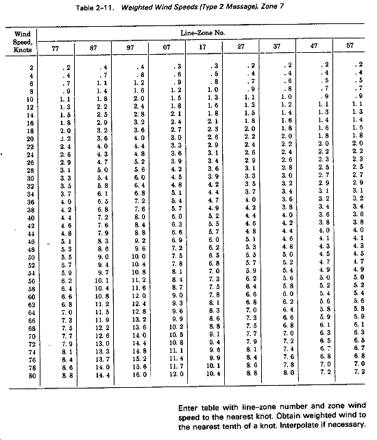 Table 2-11. Weighted Wind Speeds (Type 2 Message), Zone 7