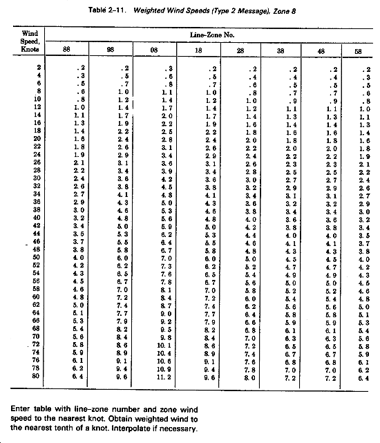 Table 2-11. Weighted Wind Speeds (Type 2 Message), Zone 8
