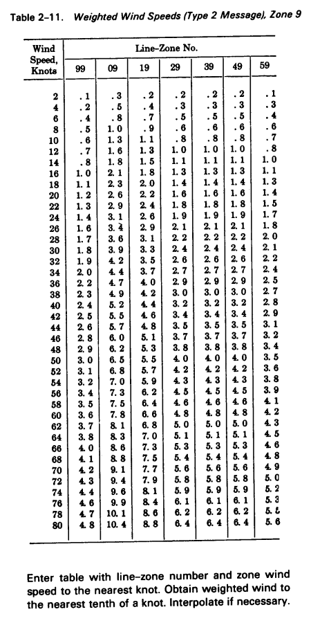Table 2-11. Weighted Wind Speeds (Type 2 Message), Zone 9