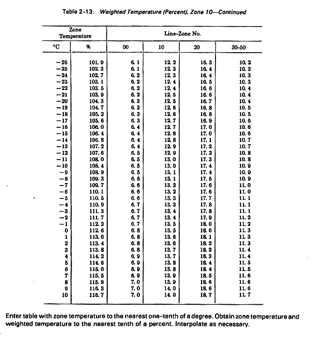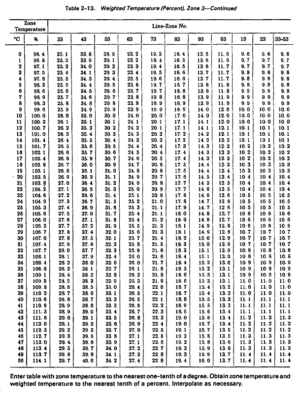 Table 2-13. Weighted Temperature (Percent), Zone 3--Continued