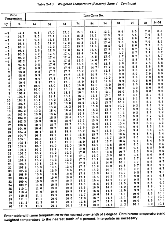 Table 2-13. Weighted Temperature (Percent), Zone 4