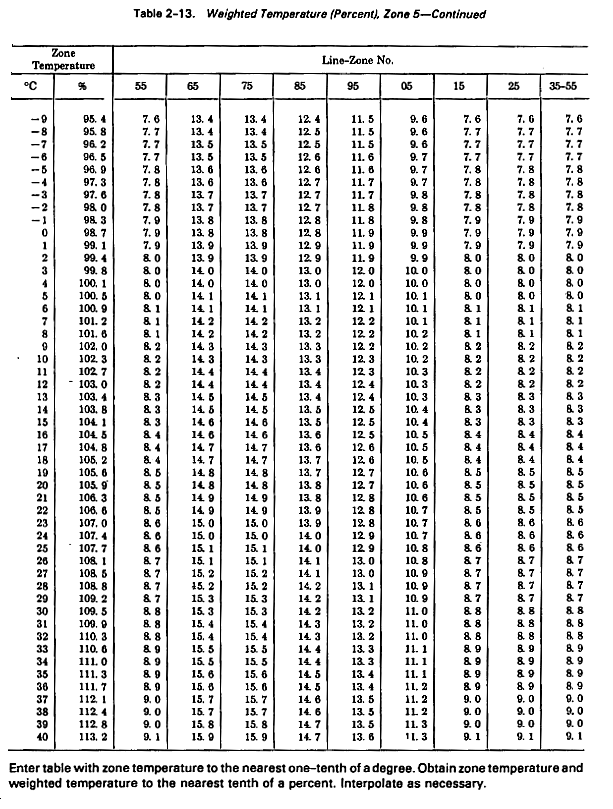 Table 2-13. Weighted Temperature (Percent), Zone 5--Continued