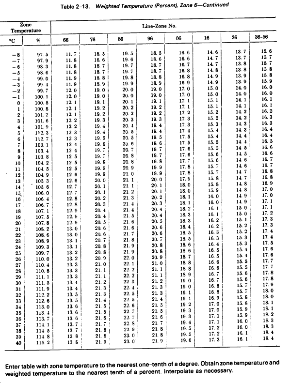 Table 2-13. Weighted Temperature (Percent), Zone 6--Continued