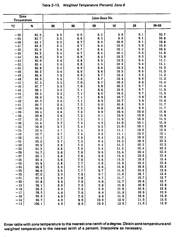 Table 2-13. Weighted Temperature (Percent), Zone 8