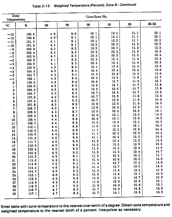 Table 2-13. Weighted Temperature (Percent), Zone 8--Continued