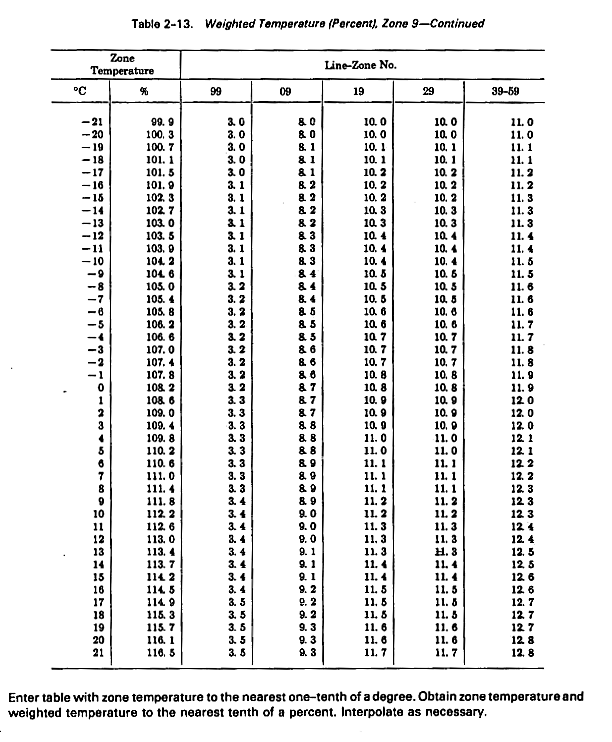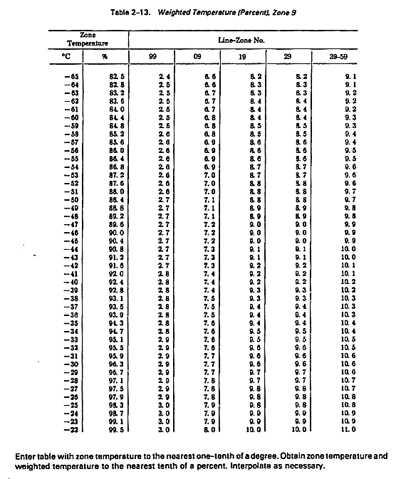 Table 2-13. Weighted Temperature (Percent), Zone 9--Continued