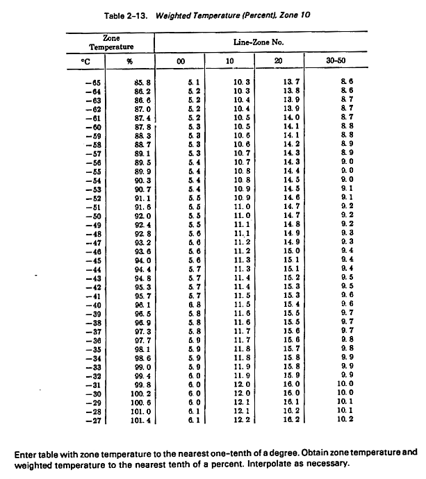 Table 2-13. Weighted Temperature (Percent), Zone 10--Continued