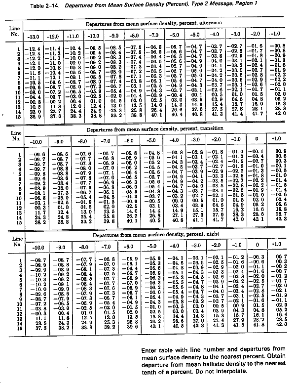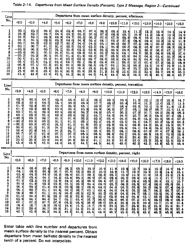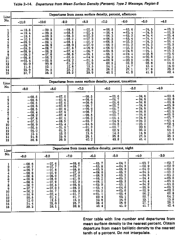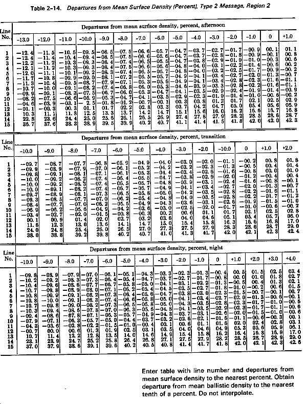 Table 2-14. Departures from Mean Surface Density (Percent), Type 2 Message, Region 6