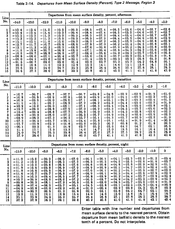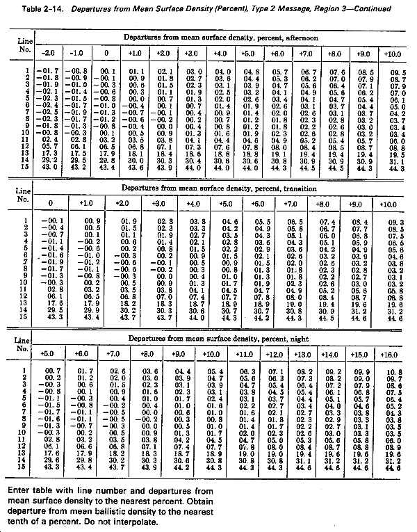 Table 2-14. Departures from Mean Surface Density (Percent), Type 2 Message, Region 3