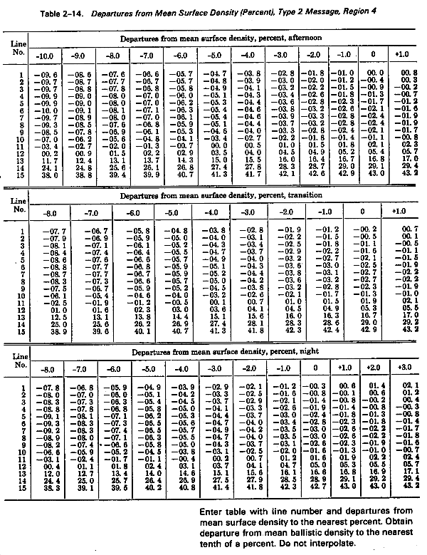 Table 2-14. Departures from Mean Surface Density (Percent), Type 2 Message, Region 4