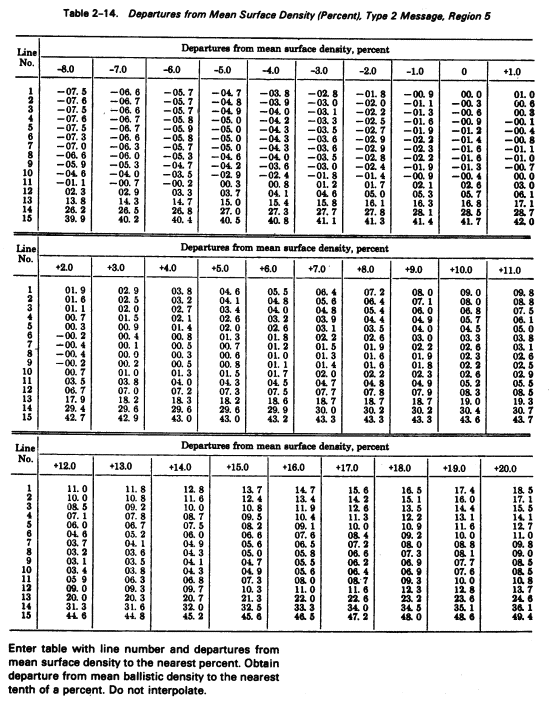 Table 2-14. Departures from Mean Surface Density (Percent), Type 2 Message, Region 5