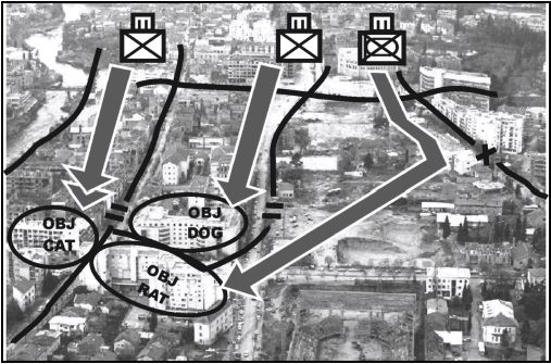 - Analysis of urban area itself to include street pattern, type structures and available maneuver space. (See FMs 34-130 and 90-10-1.)