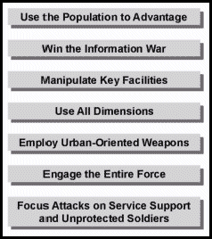 (1) Use the Population to an Advantage. The populace of a given urban area represents key terrain; the side that manages it best has a distinct advantage. Future urban battles may see large segments of the populace remain in place as they did in Budapest and Grozny. Brigades involved in urban stability operations and support operations will certainly conduct missions in and amongst the residents of the area.