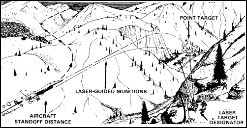(b) The ranger force can use ground laser target designators to pinpoint targets for air strikes, as well as electronic navigation aids to permit nonvisual air strikes (beacon bombing). The ranger rifle company FIST or the TACP can control a laser-designated standoff air strike (see Figure 7-5).