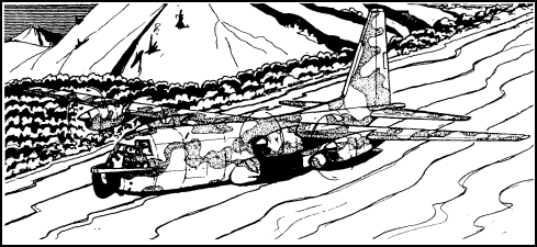 (1) The USAF provides special aviation support to the ranger regiment and other elements of the special operations force. The USAF has elements that are equipped with MC-130 Combat Talon aircraft (see Figure 7-9) and AC-130 Spectre gunships, as well as HH-53 Pave Low, UH-60, and UH-1 helicopters. These aircraft are specially equipped to conduct long-range infiltration, exfiltration, attack, and search-and rescue operations. The USAF also provides C-141B and C-130 aircraft for strategic and tactical airlift of the ranger force. There are specially trained USAF crews that can operate using AWADS and SKE. This gives them an excellent means of inserting the ranger force during reduced visibility.