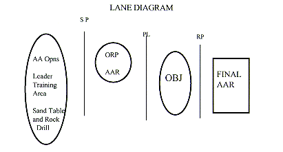 3. Lane Execution. The important thing to remember during this phase is, "Don't get wrapped up in completing the task;" stay focused on the standard. Do not be afraid to stop the lane to reinforce a standard. During the crawl and walk phase, you should plan in-progress AARs. You should choose logical times to conduct these AARs; i.e., upon completion of a particular event or just before a particular event. Unscheduled AARs should be conducted when a task is performed incorrectly or there is a safety or environmental issue. The O/C or the leader can initiate these unscheduled AARs. In the event of a safety problem, any soldier can stop the training. Upon completion of the AAR, go back to the beginning or resume the lane from where you stopped. Time will be your biggest enemy during this phase. Regardless of how much time you have, you must allow for time to retrain. Many units put themselves on such tight schedules that there is no time to retrain. This defeats the purpose of Lane Training. Every thing you do with a lane needs to be based on standards, not time. You must also remember that time can be a standard, i.e., establish an ambush no later than 1200. When used like this, time is a standard.