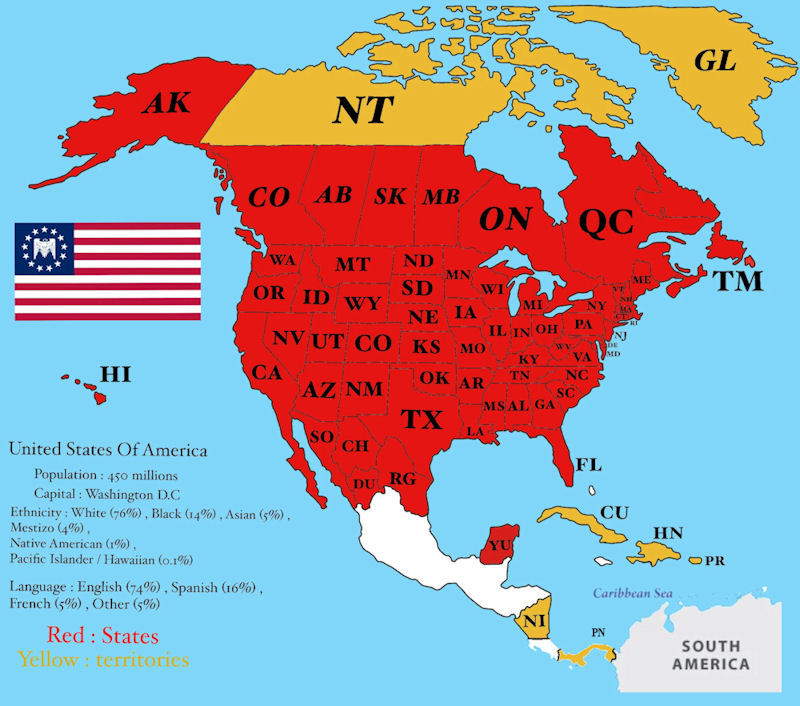 - US Annexation of Canada President-elect Donald Trump said 18 December 2024 it would be a "great idea" for Canada to become the 51st US state. "Many Canadians want Canada to become the 51st State," he said on Tuesday on his social media platform, repeating a jab at his northern neighbour that he has mentioned a few times recently. "They would save massively on taxes and military protection. I think it is a great idea." Trump took a light jab at his Canadian counterpart on 10 December 2024, referring to Justin Trudeau as the "governor" of the "Great State of Canada". Donald Trump suggested that Justin Trudeau, the Prime Minister of Canada, should become a "governor" of a U.S. state, a misunderstanding, satire, or a joke.