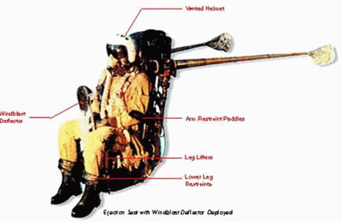 The aerodynamic forces encountered at high speeds can cause severe neck, spine, and limb injuries. Our experience with Western ejection seats, which are aerodynamically unstable and have little or no limb restraint, indicates that the risk of major injury rises exponentially from about 350 KEAS to a high probability of fatal injury near the seat's structural limit, usually about 600 KEAS. The fact that the aerodynamic forces increase as the square of the velocity has made even incremental improvement of the performance envelope very difficult. Consequently, having an opportunity to test and evaluate an ejection seat with an envelope that Professor Severin claimed provides safe escape up to 755 KEAS, was one we couldn't pass up.