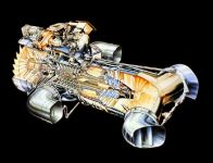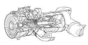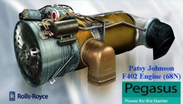 The Harrier incorporates an innovative swiveling engine-exhaust nozzle design with a lightweight airframe to permit unique maneuvering capabilities unmatched by conventional aircraft. The Pegasus provides the Harrier II with both lift and propulsive thrust through four swiveling exhaust nozzles which vector engine thrust from horizontal, for conventional flight, to vertical, for landing. The thrust of the F402-RR-406 is 21500 pounds, while the more powerful F402-RR-408 has a thrust of 23400 pounds. The F402-RR-406 Pegasus engine is a two-spool design with a low and high pressure compressor and turbine based on materials technology available in the late 1950's.