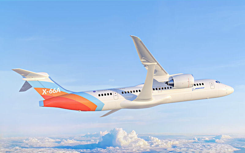 NASA’s Sustainable Flight Demonstrator (SFD), a full-scale transonic truss braced wing (TTBW) design in development by Boeing for flight tests later this decade, was designated the X-66A by the U.S. Air Force 12 June 2023. The latest X-plane, the X-66A is the first in the almost 80-year experimental aircraft series specifically focused on achieving the goal of net-zero aviation greenhouse gas emissions, according to NASA.