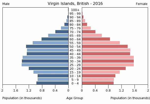 The British Virgin Islands’ 1980 census put the territory’s population at 10,985, nearly evenly split between males (51.1%) and females. Data from the 1991 population census show that the population grew by 5,123, to 16,108. This growth included a natural increase (births minus deaths) of 1,969 and a net immigration of 3,154.