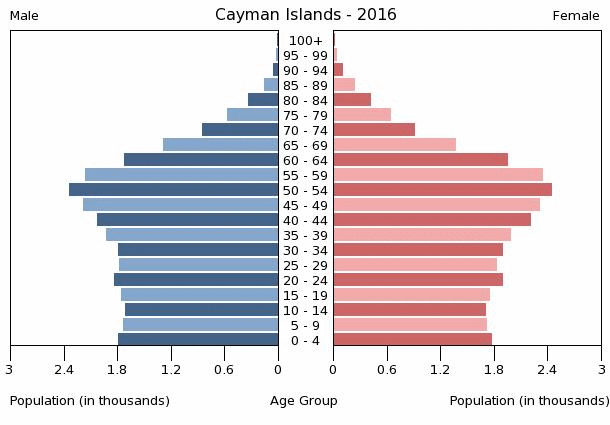 Most of the population of 57,268 (July 2016 est.) lives on Grand Cayman. Ethnic groups include mixed 40%, white 20%, black 20%, expatriates of various ethnic groups 20%.