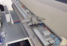 Chinese patent CN201089521Y [23 July 2008] disclosed a steam catapult for aircraft carrier-based aircraft, including decks, process control systems, launch systems and lubrication systems. Transmission system including a guide groove open deck aft, moving along the guide groove ejection buffer, the buffer at one end is connected to a catapult annular cable, annular cable surround the front and rear two fixed support wheels, a cylinder disposed in the annular below the cable, the annular piston is fixedly connected at both ends of the cable and the cylinder, the high-pressure cylinder closed at one end has a lubrication system, through a high pressure steam pipe with pneumatic valves connected to the other end of the brake piston disposed vent and buffers.