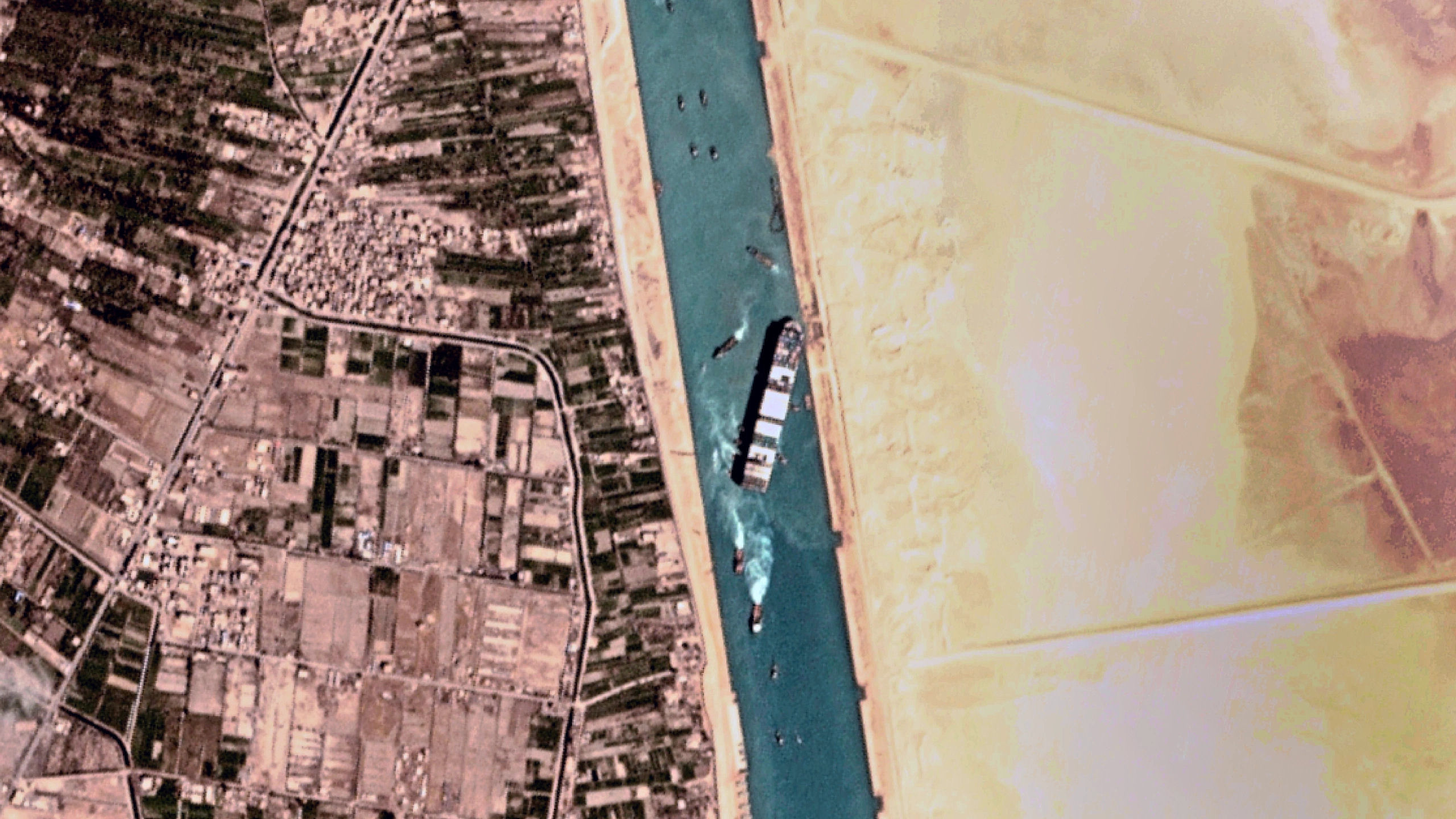 A cargo container ship among the largest in the world turned sideways and blocked all traffic in Egypt’s Suez Canal, pushing oil prices up 5% in markets in New York and threatening to disrupt a global shipping system already strained by the coronavirus pandemic. The MV Ever Given, a Panama-flagged container ship that carries trade between Asia and Europe, became grounded 23 Marach 2021 in the narrow, man-made waterway dividing continental Africa from the Sinai Peninsula. It wasn’t immediately clear what caused the Ever Given to turn sideways in the canal. GAC, a global shipping and logistics company, described the Ever Given as suffering “a blackout while transiting in a northerly direction", without elaborating. Evergreen Marine Corp., a major Taiwan-based shipping company that operates the ship, said in a statement provided to The Associated Press that the Ever Given had been overcome by strong winds as it entered the Suez Canal from the Red Sea but none of its containers had sunk.