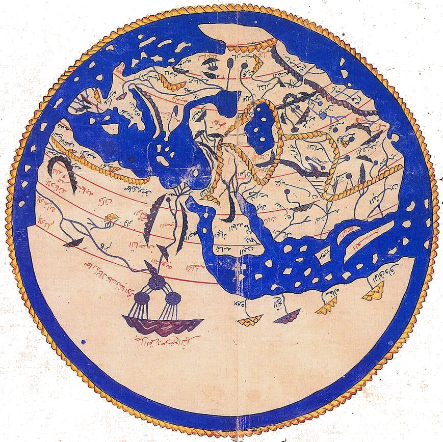 For in the generations immediately succeeding Al Biruni, the most active school of Mohammedan geography is to be found in the Far West. The Description of the entire Oikoumene attempted in the middle of the same twelfth century by Abu Abdullah Mohammed Ibn Idrisi, the 'Edrisi' of most European writers, is certainly the chief accomplishment of Western Islam, in all those departments of knowledge which may be grouped as 'geographical,' during the Crusading Age. Whether born at Ceuta or no, in or about 1090 or later; whether truly or falsely credited with personal travels in Southern and Western Spain, in various regions of Marocco and Algeria, in France, and even in England, — Edrisi certainly seems to have resided in later life at the court of Roger II of Sicily, and to have composed his masterpiece under the patronage of the same prince, who created him a noble, and dispatched men even to remote Scandinavia to gather materials for his work. Edrisi was therefore in closer official relations with the men and thought of Christendom than most Arabic savants, and it is disappointing to find so few direct traces of his influence on European speculation and cartography, although in the world-maps of Marino Sanuto and Pietro Vesconte this influence is very apparent.