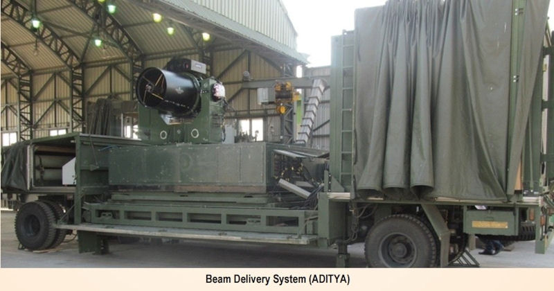 DRDO had a 100KW laser named ADITYA. This Gas Dynamic Laser was not mobileble, though mounted on wheeled vehicles it was tranportable, and had a lot of complex plumbing. Lasers have become an indispensable part of the modern day battlefield. Depending on the wavelength and power; lasers have wide spectrum of military applications from dazzling human eye to shooting down a UAV, guiding munitions for precision strike, imaging enemy targets and detecting chemical, biological and explosive materials.