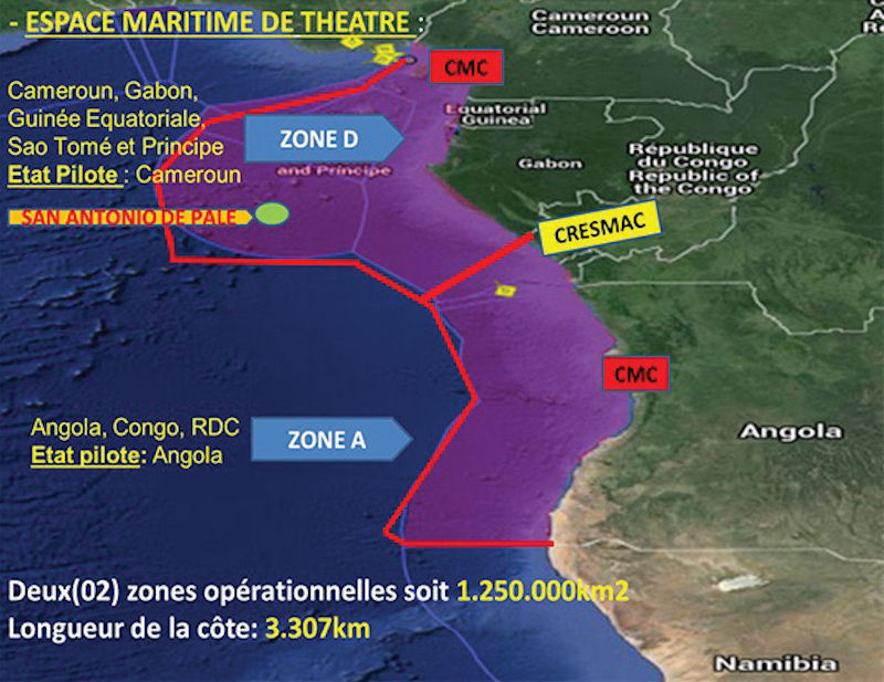 The maritime domain of Central Africa was divided into 2 zones, with Zone A consisting of Angola, Congo and Democratic Republic of Congo and Zone B consisting of Cameroon, Gabon, Equatorial Guinea and São Tomé and Principe. Despite, the establishment of CRESMAC in October 2009, it only became operational on 20th October 2014 and so far does not have all the proposed Multinational Centers of Coordination.