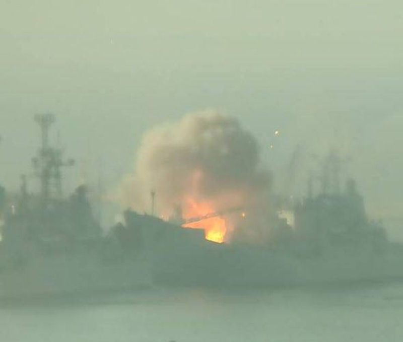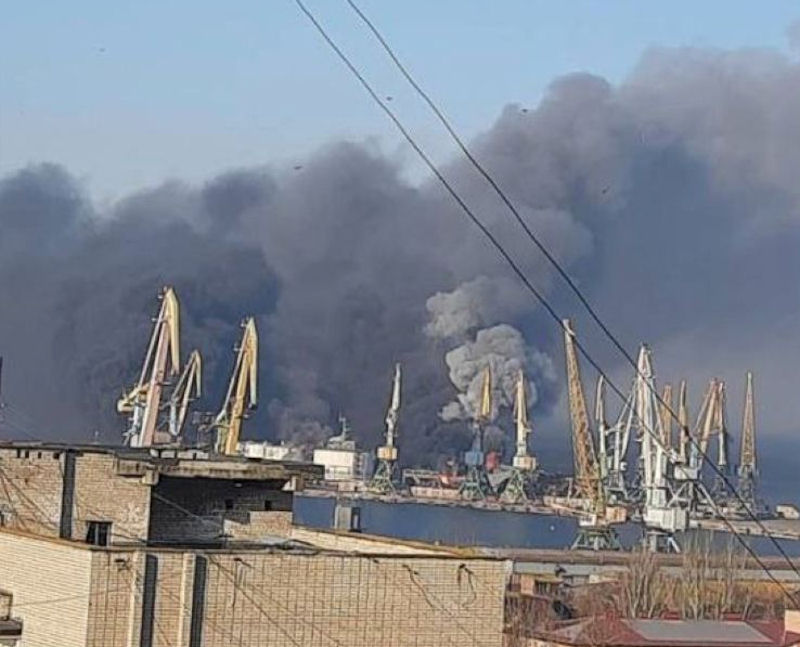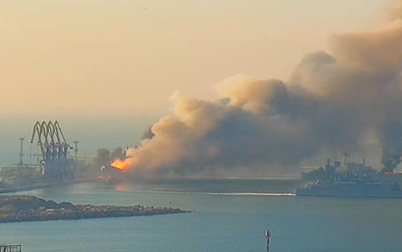 The Command of the Marine Corps of Ukraine reported on Facebook that as a result of a fire in the port of Berdyansk, ammunition detonated on the Russian warship Saratov and a fire broke out, the Russian large landing ship Konstantin Olshansky was also damaged, among its crew were three dead and three the wounded.