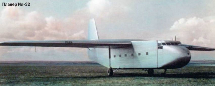 In 1948, to determine the flight characteristics of the Il-32 glider, it was tested with the Il-12D towing aircraft . The flight weight of the airframe was 8400 kg. In the same year, the glider was towed by an IL-18 aircraft (built in 1946). In this case, a glider with a load of 7000 kg had a flight weight of 16000 kg.