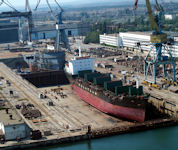 Located in Kerch, in Eastern Crimea, this yard is a leading producer of tankers of up to 80,000 dwt. The largest ship which it has built is a 150,000 dwt tanker. The Ukrainian shipbuilding companies mostly build vessels to orders. Ukrainian shipbuilding, like all branches of Ukrainian economy, faced serious problems: a fall in work load, increased debt to the state budget and partners, arrears in wage payments, strikes resulting from social tension at a number of enterprises, the stoppage of work at Zaliv shipyard in Kerch.