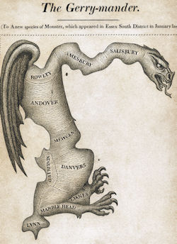 Gerry retired from public life after two terms in the House, but it was an active retirement. As Governor of Massachusetts (1810–1812), Gerry approved a redistricting plan for the state senate that gave the political advantage to Republicans. Someone observed that one of the districts looked like a salamander, and soon the process was known as “gerrymandering.” Since then, “gerrymandering” has for years produced odd-shaped congressional and state legislative districts. He served not only as Massachusetts Governor but also as President Madison’s Vice President (1813–1814). He died while Vice President in 1814.