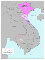 It was during the Ly dynasty that the expansionist policy of nam-tien (march southward) began in earnest. This policy was continued down through Vietnamese history until 1780, when the southern tip of the Indochinese peninsula was acquired from Cambodia. Le Hoan had sacked the Cham capital of Indrapura in 982, whereupon the Cham established a new capital at Vijaya. This was captured twice by the Vietnamese, however, and in 1079 the Cham were forced to cede to the Ly rulers their three northern provinces. Soon afterwards, Vietnamese peasants began moving into the untilled former Cham lands, turning them into rice fields and moving relentlessly southward, delta by delta, along the narrow coastal plain.